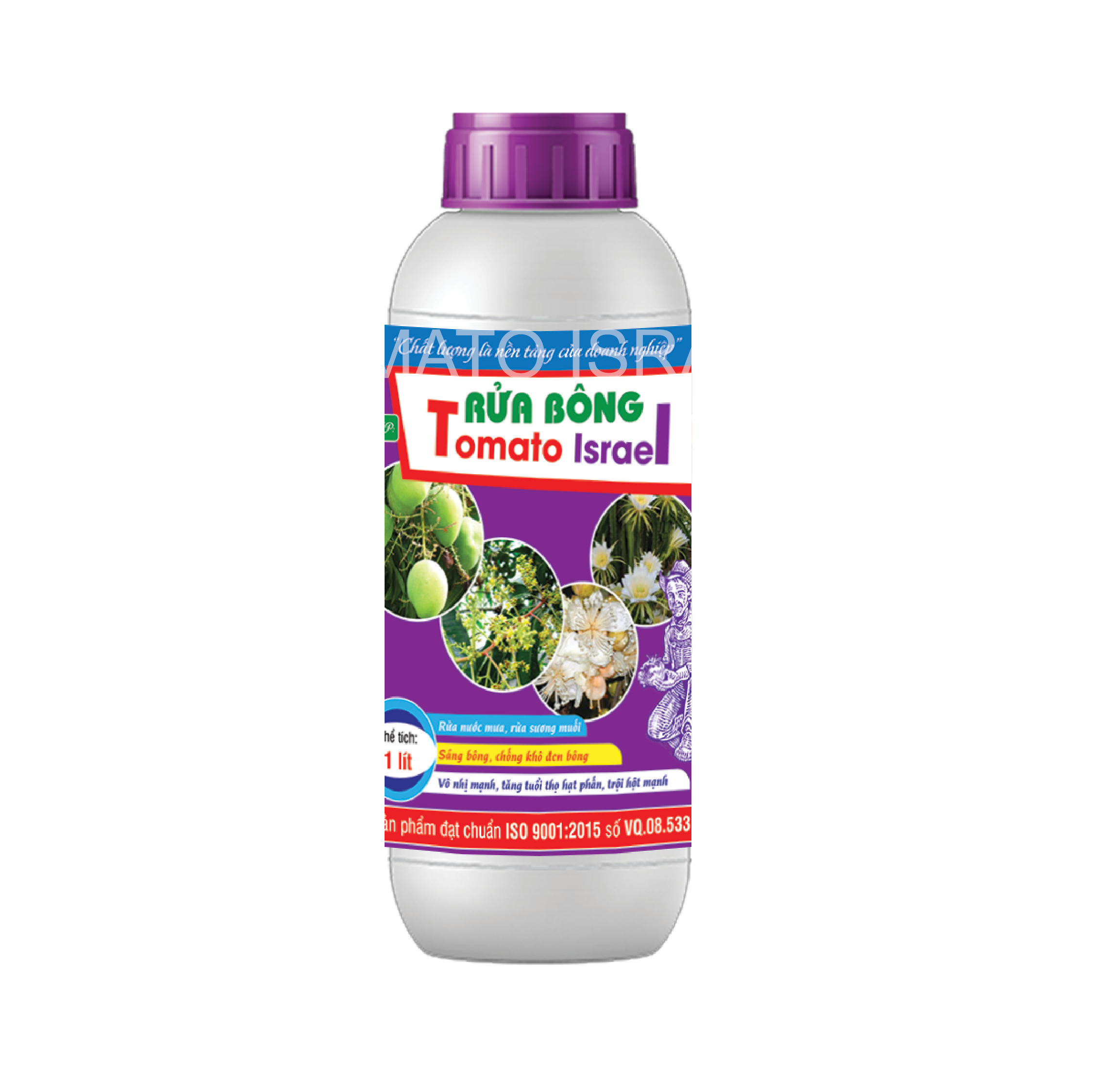 RỬA BÔNG TOMATO ISRAEL được sản xuất theo tiêu chuẩn quốc tế với công nghệ Nano, cung cấp các khoáng chất dinh dưỡng ở dạng Chalate và Acid amin, các vitamin giúp cây tăng trưởng và phát triển mạnh, bền vào mọi giai đoạn cây. Sản phẩm cung cấp vi lượng kẽm (Zn), Boric (Bo), Canxi (Ca), Magie (Mg),... và các dinh dưỡng khác nhằm kháng lại 1 số điều kiện bất lợi như: mưa nhiều, sương muối, thán thư bông,... giúp sáng hoa, chống khô đen bông và tăng tỷ lệ đậu trái cao.
