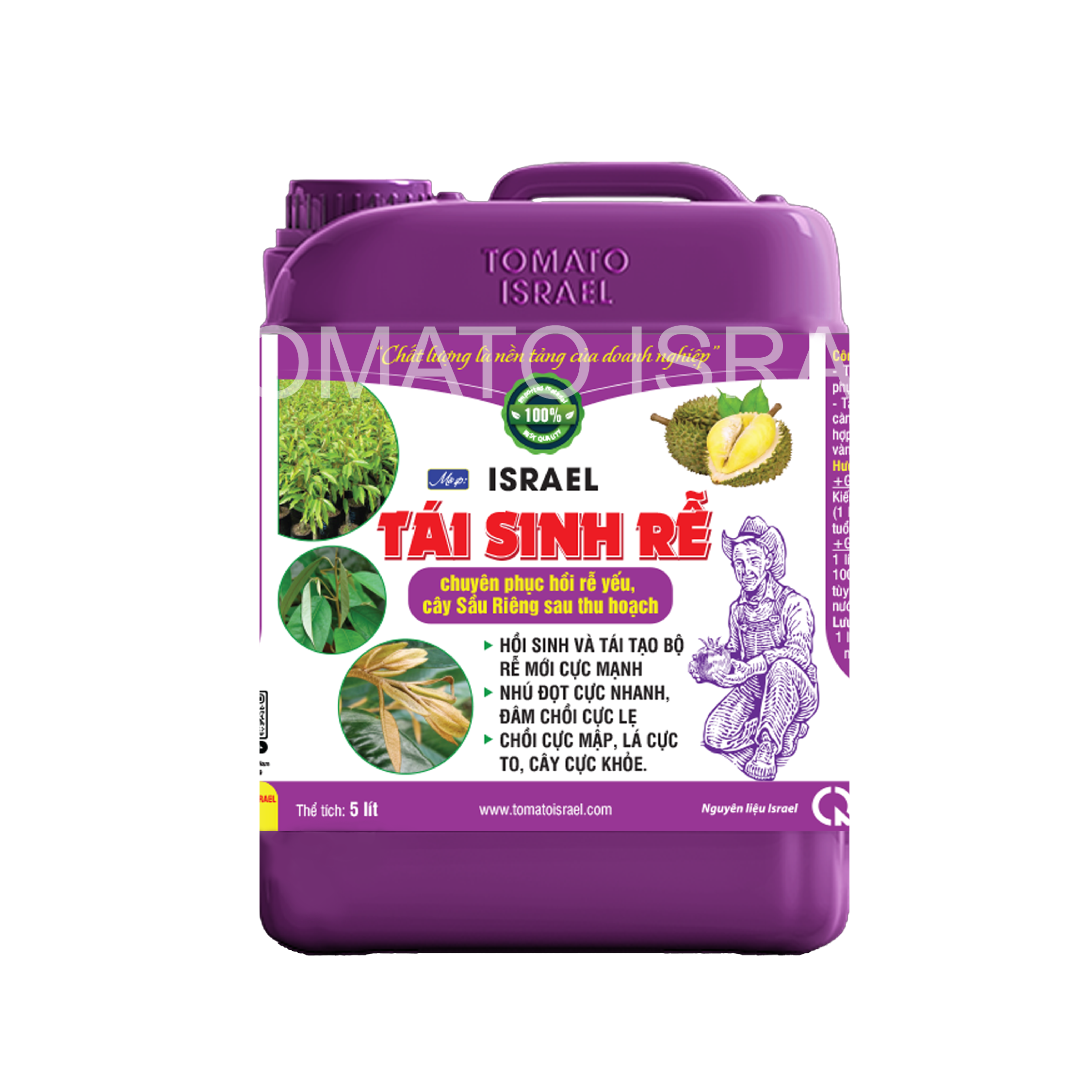 Được nhập khẩu nguyên liệu từ Israel, ISRAEL TÁI SINH RỄ chuyên cây sầu riêng giúp hồi sinh và tái sinh bộ rễ mới cực mạnh, nhú đọt cực nhanh, đâm chồi cực lẹ, chồi cực mập, lá cực to, cây cực khỏe,...