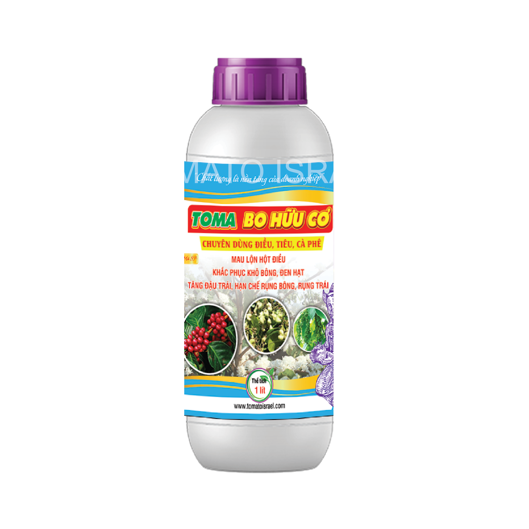 TOMA BO HỮU CƠ với thành phần chính là Kẽm và Bo một sản phẩm chuyên dùng cho điều, tiêu, cà phê chuyên hỗ trợ mau lộn hột điều, khắc phục khô bông, đen hạt, tăng đậu trái, hạn chế rụng bông, rụng trái.