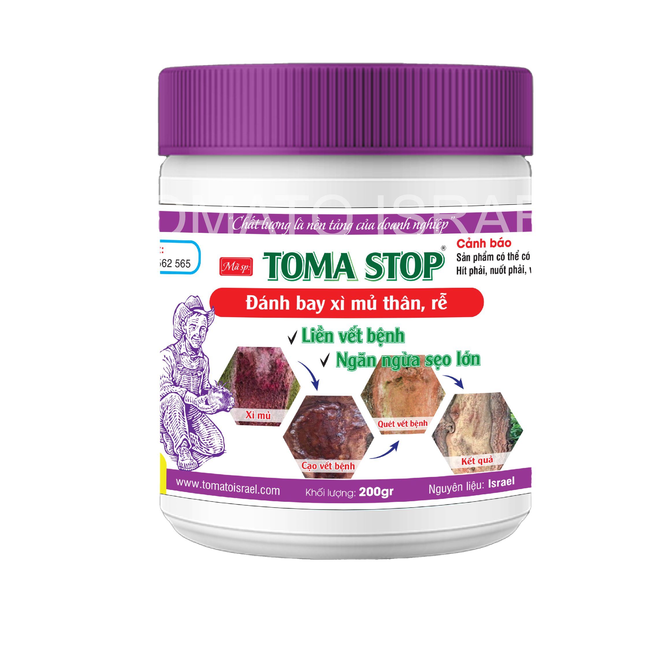 Được nhập khẩu nguyên liệu từ Israel, TOMA STOP là sản phẩm chuyên đánh bay xì mủ thân, rễ, liền vết bệnh, ngăn ngừa sẹo lớn.